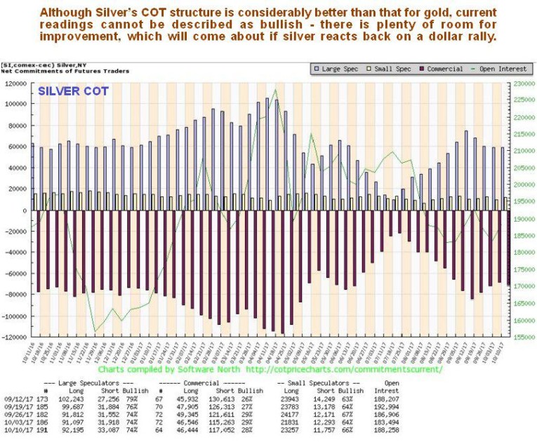 While silver’s latest COTs look rather better than those for gold, they are still a long way from being outright bullish – there is plenty of room for improvement, and thus plenty of room for silver to drop short-term…