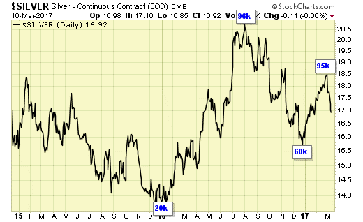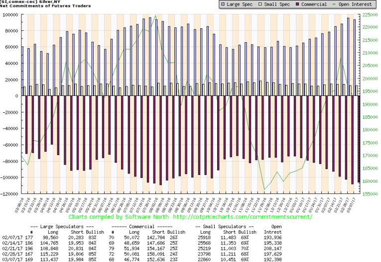 Silver traders are wise to pay attention to what the speculators are doing. Currently a liquidation has started and should last a few weeks until net long positions are much lower than current level.