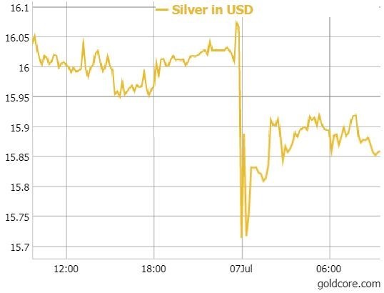 This isn’t the first so called ‘flash crash’ silver has seen in the last month. It fell in tandem with gold’s 1% ‘crash’ on June 26th, by 1.3%. Prices did not rebound as quickly, silver has declined by nearly 3.7% between then and July 6th.