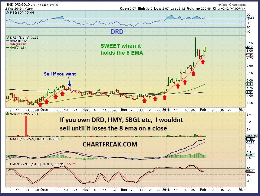 DRD – See HMY, SBGL also. Many Miners are moving higher. Can you imagine this happening in GDX / GDXJ? It is possible in my humble opinion, when the tide finally turns in phase 3 of the Gold Bull. Huge % gains will be made by those that know what to look for.