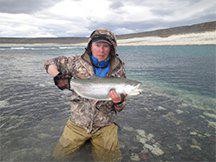 I was cold and wet, casting flies in 60 mph winds for giant Rainbow trout on Argentina's remote Jurassic Lake.