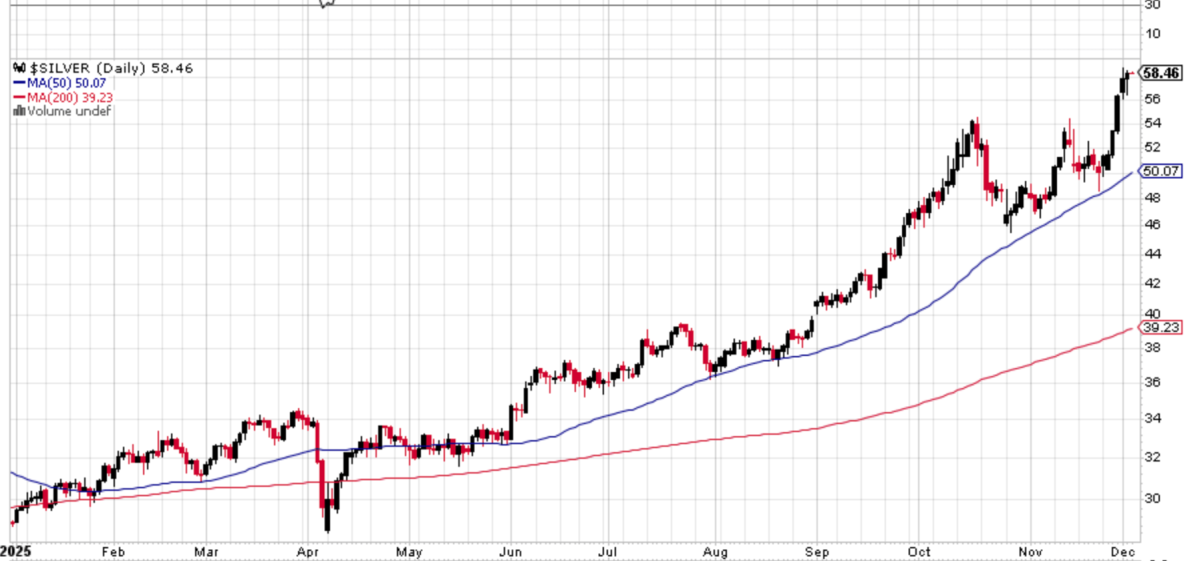 Many analysts claim the movement of silver from London to New York last spring, due to tariff worries, set the stage for the record run by silver in October. As demand picked up, particularly in India, traders scrambled to find available metal. A rapid shift of silver from New York to London eased the squeeze, but it didn't solve the underlying problem.