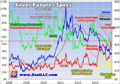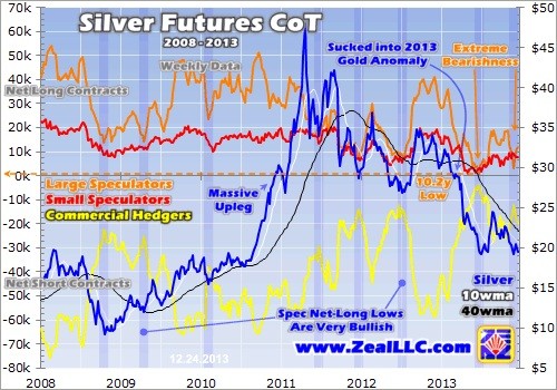 Today’s near-record futures shorts are extremely bullish for silver as we dive into 2014. It is guaranteed near-future buying that feeds on itself. The early gains in major new silver uplegs are nearly always sparked by short covering, and the bigger the shorts the greater the initial boost. But futures speculators short silver are certainly not its only buyers. Their early buying will start enticing investors back into silver.