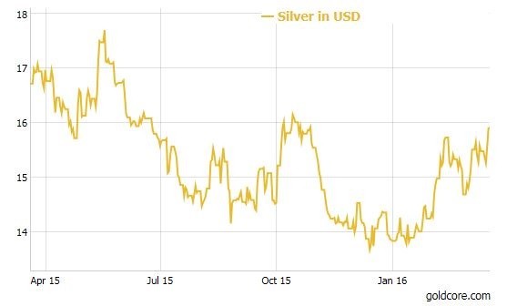 Silver rose 2% yesterday…and has surged 4% this week to over $16 per ounce as the Federal Reserve flip flopped regarding interest rates, lowering its expectations for rate rises this year from four back to two or just one rate rise due to “global risks.”
