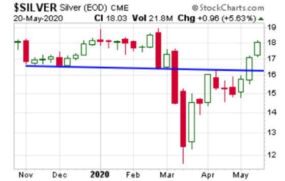 After the panic selling of March briefly brought spot silver below $12/oz, prices have since surged by 50%. That’s an impressive move to take place within the span of just two months.