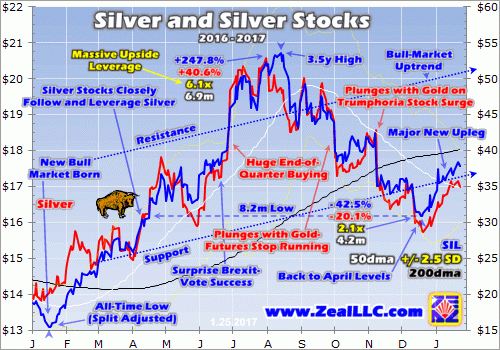 If a major new silver upleg is indeed underway, silver stocks are going to enjoy another fantastic year in 2017. Despite their miserable anomalous Q4 selloff, SIL still soared 73.5% higher in 2016! I suspect the silver stocks will see even-bigger gains this year. As of this week, silver has only climbed 9.1% off its own late-December low in the wake of that Fed rate hike. That’s nothing for an upleg in a silver bull.