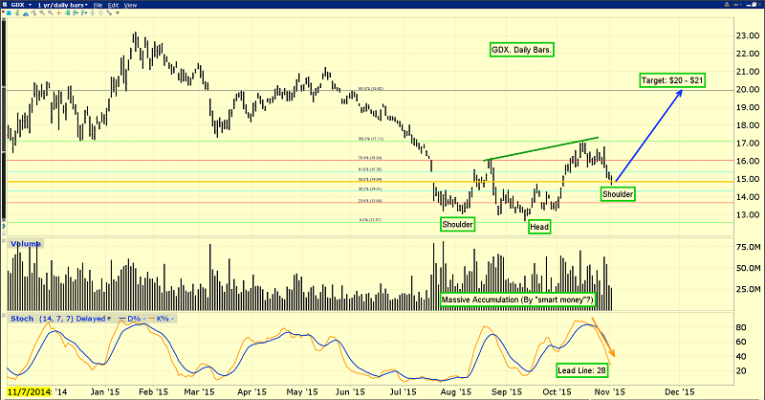That’s the daily GDX chart. I asked the entire global gold community to give serious consideration to pressing their gold stock “buy button”, if GDX traded under $15. It did so, but only briefly, yesterday.