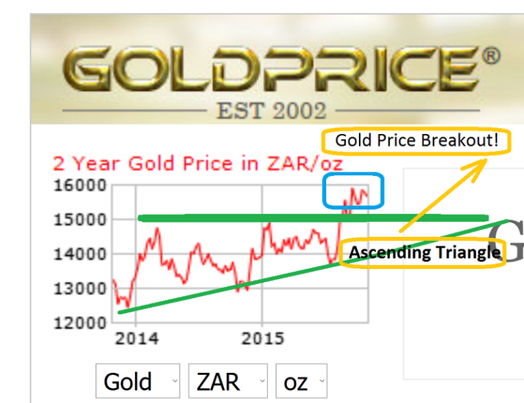 I’ll dare to suggest that….times have changed! Chinese companies are becoming eager to invest in South African mines, and the dollar/rand rally has created a massive breakout in the local gold price. Note the beautiful ascending triangle in play on that chart. Australian engineers have been hired to help mechanize key mines in South Africa, and they still hold some of the biggest reserves on a per mine basis. That’s very attractive to Chinese players, who plan carefully for the long term!