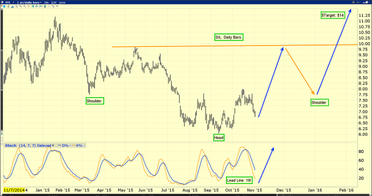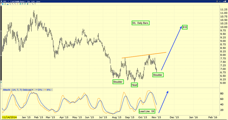 2016 is clearly setting up to be a wonderful year for gold stocks, and silver stocks look even better! That’s the daily SIL chart, and quite frankly, it looks awesome. The short term upside implications are clear. Note the beautiful oversold position of my key 14,7,7 Stochastics oscillator at the bottom of that chart. There’s a very solid inverse head and shoulders bottom pattern in play. I’ve set the price target at ten dollars per SIL share.
