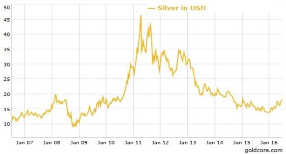Silver in USD – 10 Years