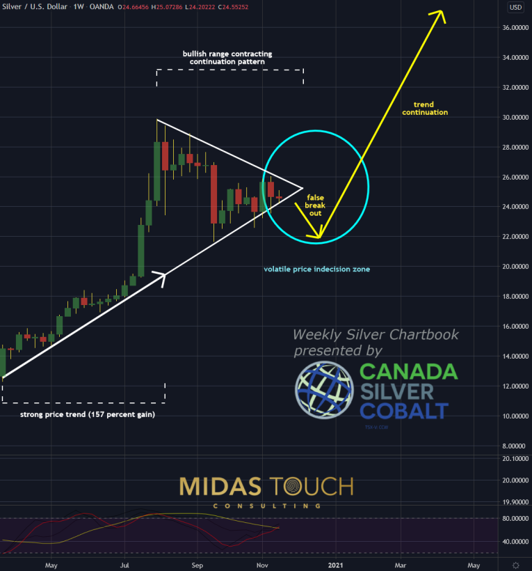Silver in US Dollar, weekly chart as of November 26th, 2020