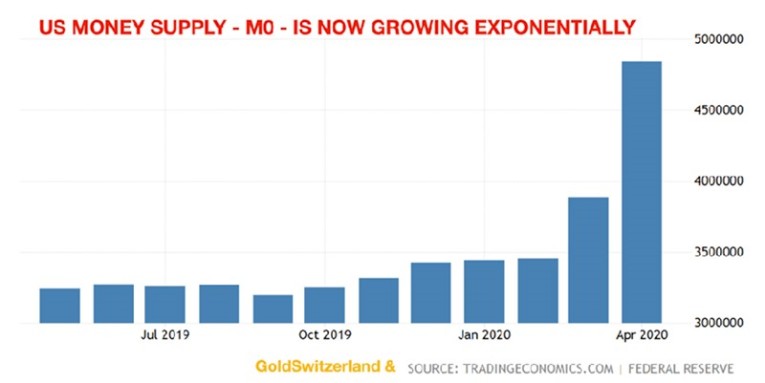 But we are already seeing the first symptoms of hyperinflation with US Money Supply growing exponentially:
