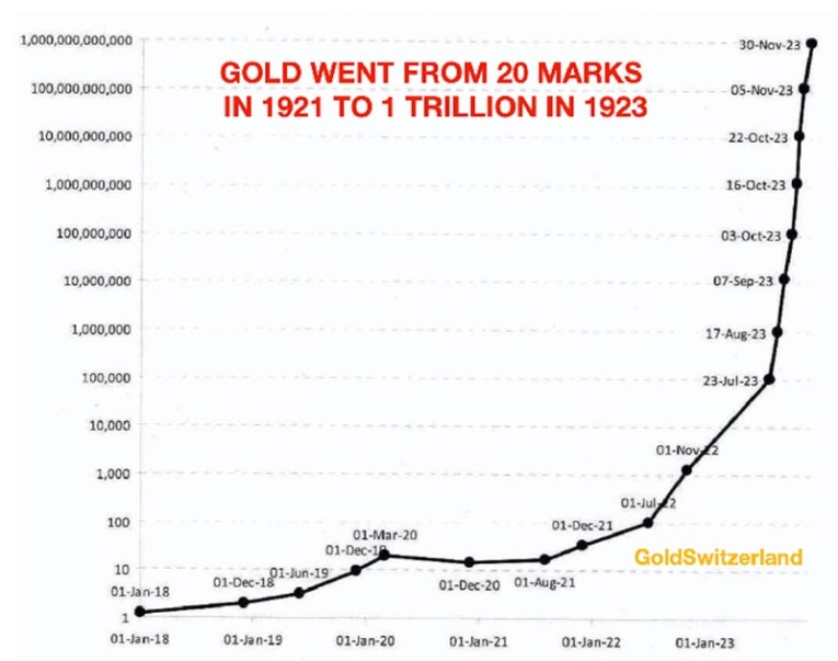 Many are saying that we have no inflation today so how can we get hyperinflation. What few understand is that hyperinflation is a currency driven event. It arises as a result of the currency collapsing. And the currency collapses due to massive money printing which we are seeing the beginning of now.