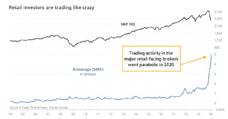 The chart below shows that trading volume at Retail Brokers have quintupled this year. This is a typical signal that this bull market is coming to an end.