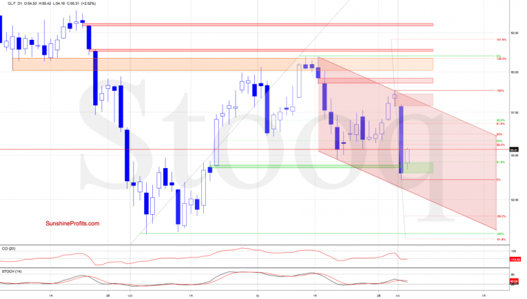 On Wednesday, crude oil futures invalidated the earlier tiny intraday breakout above the 61.8% Fibonacci retracement (based on the decline from July highs to July lows, as marked in our yesterday Alert’s chart) and finished the day below it.