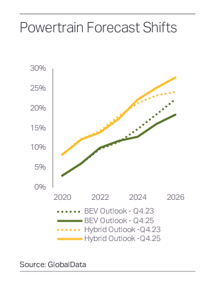 “This period has been shaped by supply chain disruptions linked to COVID-19, semiconductor shortages, evolving trade dynamics, and regulatory shifts following political changes. Together, these factors have led to a less clear electrification pathway and greater regional variation in the powertrain mix.”