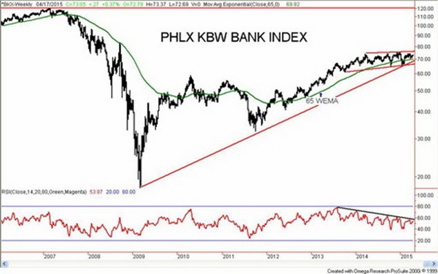 Note: The PHLX KBW Bank Index is a modified cap-weighted index of 24 exchange listed national and money center banks and some leading regional banking institutions.