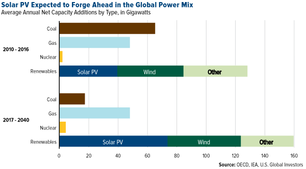 The claims above, which come from the International Energy Agency’s (IEA) just-released World Energy Outlook 2017, is constructive for one of our favorite stocks, SolarEdge Technologies, held in our Global Resources Fund (PSPFX). The company was up more than 202 percent in 2017 as of November 13, jumping nearly 20 percent in a single day last week after record revenues and profitability were announced for the third quarter. The S&P 500 Energy Index, by comparison, has delivered negative returns for the year.