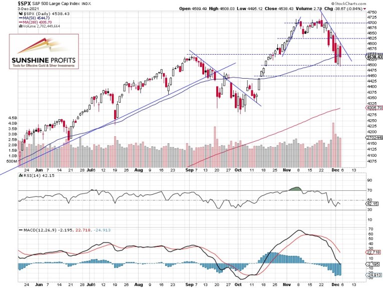 The nearest important support level is still at 4,500. On the other hand, the resistance level is at 4,580-4,600, marked by the recent local lows. The S&P 500 remains below its short-term downward trend line, as we can see on the daily chart (chart by courtesy of http://stockcharts.com):