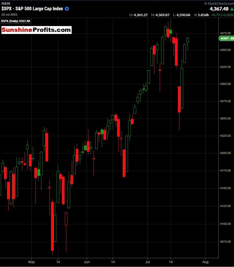 Figure 1 - S&P 500 Index April 15, 2021 - July 21, 2021, Daily Candles Source stockcharts.com