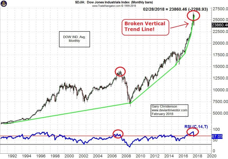 The monthly and weekly RSI (Relative Strength—one of many timing indicators) reached all-time highs (over 116 years). The DOW moved too far and too fast, and then, as always, corrected.