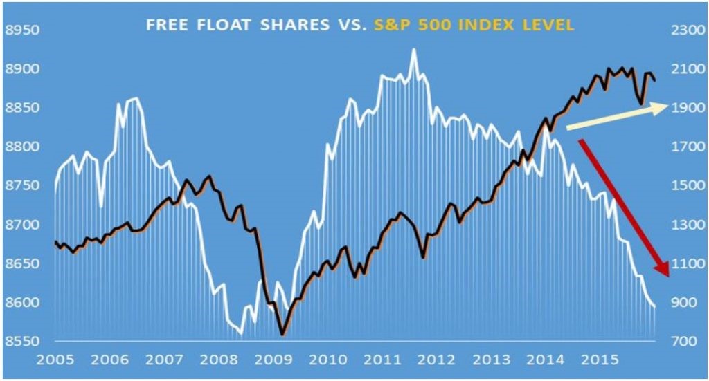 The stock pool reduction is the one pool least understood or fully appreciated. In 2005 the US markets were changed to a "Float Adjusted Market Capitalization" system. This change in 2016 had the effect of reducing the public float by approximately $1 Trillion!