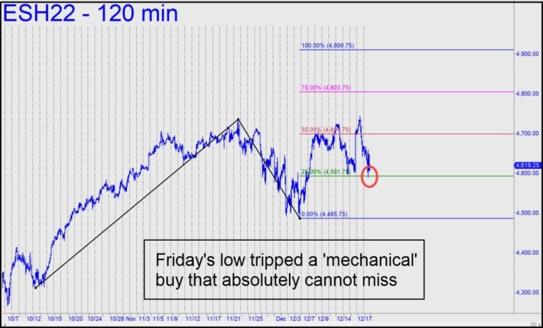 The bull market's agitated death dance continued last week, challenging bulls and bears alike to sell the dips for a rare change. The E-Mini S&Ps seemed to promise the perfect opportunity for this as the week shuddered to a close. On Thursday the futures trapped bulls with a short-squeeze spike overnight on the usual zero volume. They plummeted for two straight days thereafter, seemingly unable to arouse enough fear or anxiety to trigger short-covering. A rally attempt mid-day Friday sputtered out quickly, leaving the March contract near the intraday low at the bell. Such weakness ahead of the weekend should have seemed enticing to anyone wanting to bet the 'Don't Pass' line. Actually, this should hold true on any Friday, since there's absolutely no chance there will be news over a weekend that could be construed as remotely bullish, other than by the blithely ignorant talking heads who appear regularly on Bloomberg and CNBC.