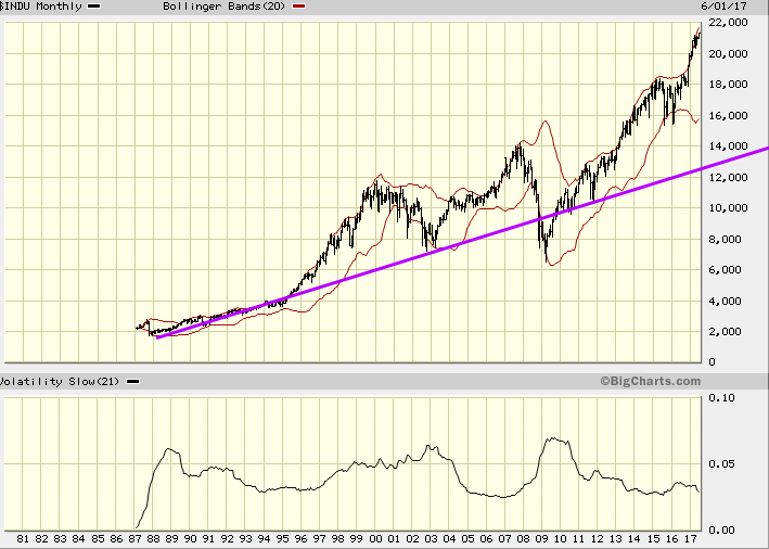 History never changes; the markets will experience one very strong correction before this bull keels over. The problem is that the masses have been waiting for a strong correction since roughly 2013. The ironical part is that the markets will pull back strongly, but most likely they will be trading at a higher level than they were at 2013. In 2013 the Dow was trading in the 12,800-13,000 ranges. While it is possible that the Dow could drop to this level, it is a low probability event as the masses are far from Euphoric at the moment. Most likely the Dow will shed 25%-30% from its highs. Assume the Dow trades to 22K; at the extreme end, the Dow could drop to the 15,600 ranges. Market Update June 18, 2017