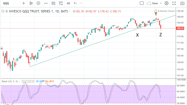 Normally, when a rising wedge is broken, there is a snap back to the wedge and sometimes inside the wedge before it drops further. We have not seen that yet.