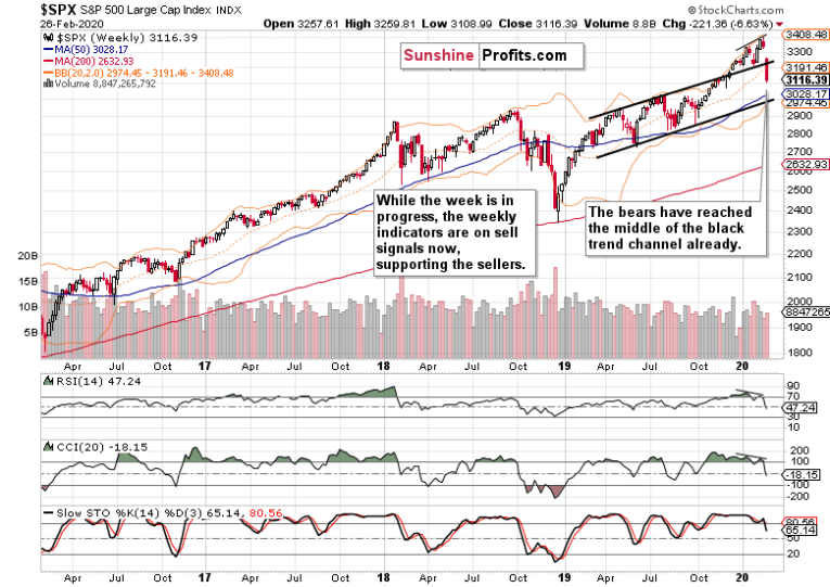 Let’s briefly check what kind of progress the bears made yesterday on the weekly chart (charts courtesy of http://stockcharts.com).
