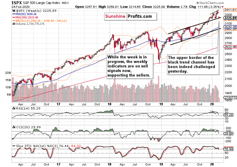 (…) the levels of both of these indicators with the price action. Stocks have been rising while both the RSI and CCI made lower highs. You can see it marked on the above chart with thin black lines. We have two divergences here – in other words, they didn’t confirm the price advance.