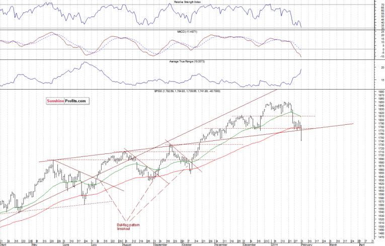 The main U.S. stock market indexes lost between 2.1% and 2.3% on Monday, extending their recent selloff. Investors reacted negatively to worse-than expected ISM Index announcement. The S&P 500 index broke sharply below the support at around 1,775, which is a negative signal. The index is the lowest since last October, with the nearest possible level of support at around 1,730, marked by last September’s local high. On the other hand, the nearest resistance is at 1,745-1,750: