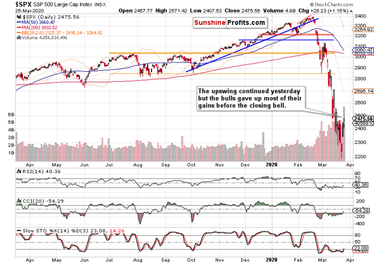 The much-anticipated upswing continuation came yesterday, and the bulls certainly fought hard to keep up the upside momentum. To what degree have they been successful with most of the intraday gains evaporating before the closing bell?