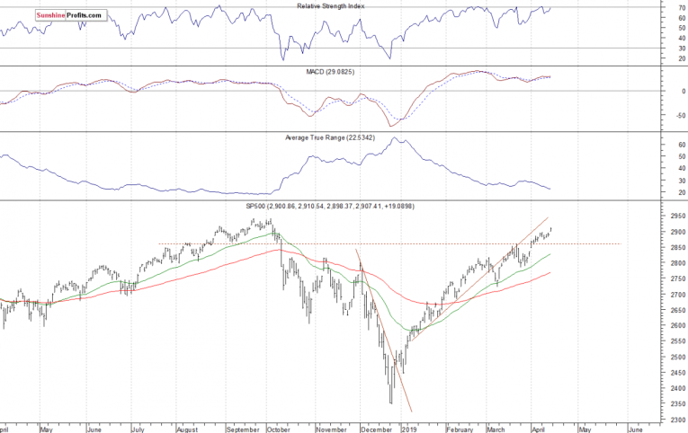 The U.S. stock market indexes gained 0.5-1.0% on Friday, breaking above the recent trading range, as investors’ sentiment improved following the first quarterly earnings releases, among other factors. The S&P 500 index retraced more of its October-December downward correction of 20.2% on Friday. It broke above the 2,900 level. The broad stock market's gauge is now just 1.1% below September the 21st record high of 2,940.91. The Dow Jones Industrial Average gained 1.0% and the Nasdaq Composite gained 0.5% on Friday.