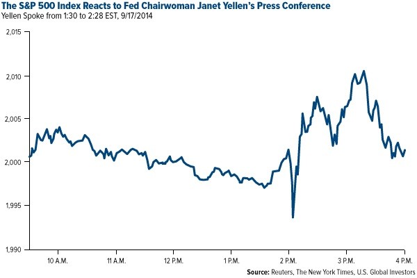 It was “game on” for the stock market following Yellen’s speech. The Dow Jones Industrial Average closed at a new record high of 17,156, while the S&P 500 Index rose two points to close at 2,001, the Nasdaq nine points to end at 4,562.