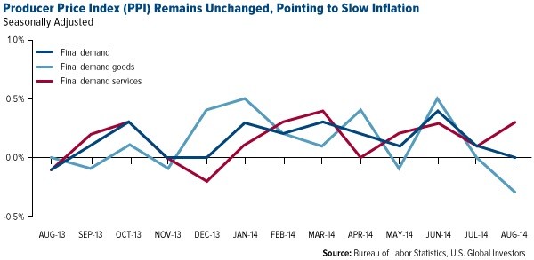 The producer price index (PPI) numbers, released last Monday by the U.S. Bureau of Labor Statistics (BLS), reveal that demand goods such as gasoline and food dropped 0.3 percent while demand services rose 0.3 percent, resulting in an unchanged final demand of 0.0 percent.