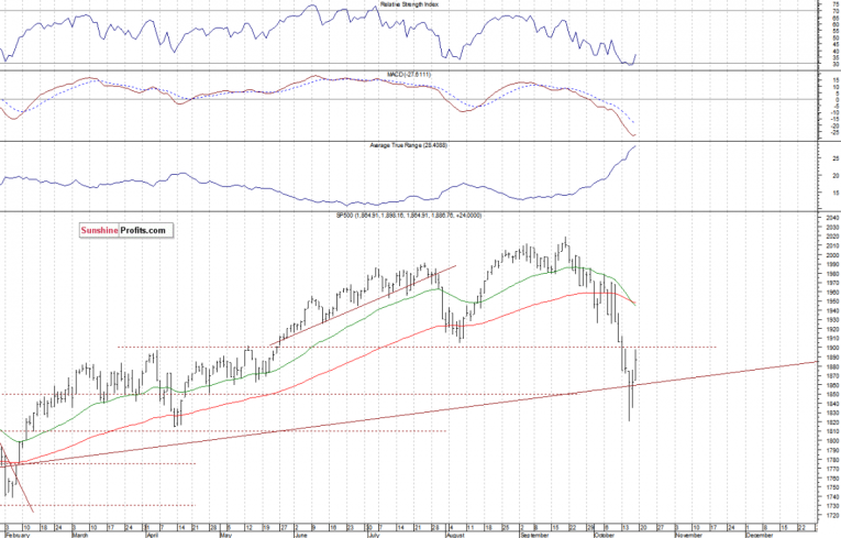 The U.S. stock market indexes gained between 1.3% and 1.6% on Friday, retracing some of their last week’s losses, as investors hunted bargains following relatively sharp downward correction. The S&P 500 index bounced off the support level of 1,800-1,820, marked by previous medium-term lows. On the other hand, the nearest important level of resistance is at 1,900-1,910, marked by previous support level, among others. For now, it looks like an upward correction within a short-term downtrend, as there have been no confirmed downtrend reversal signals so far: