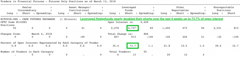In our Telegram Channel, I wrote on Thursday 15th of March 2018 “The latest CoT-Report for Bitcoin Futures shows massively increased short positions by the large speculators which usually are trend-following hedge funds… Expect a short squeeze soon or later… !”