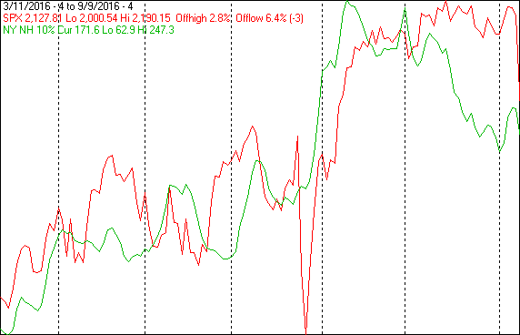 I am presenting this chart a negative because the last high in NY NH was in early July and it has been falling ever since, failing to confirm the all-time SPX high last month and well below its early July high. However, it could be worse. Over 25 years ago I developed a timing system called MIRAT and one of the parameters was a No Sell Filter imposed when NY NH was above 130. As of Friday's close NY NH was at 172. That was back in the day when the percentage of fixed income issues on the NYSE was much smaller than it is today. The extent to which the high percentage of fixed income issues contaminates the data is still unknown.