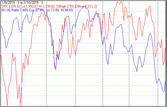 NY HL Ratio finished the week where it finished last week at a very weak 27%. There is a clearly visible pattern of lower highs and lower lows.