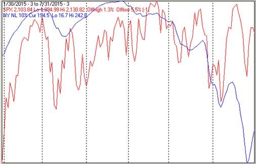 NY NL moved sharply upward last week.  It will take more than 195 NYSE new lows to turn the indicator downward.  Last Friday their were only 72.