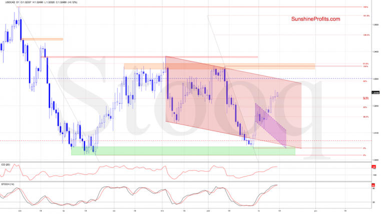 (…) Yesterday brought us verification of the breakout above the declining purple trend channel, suggesting that higher values of USD/CAD are just around the corner.