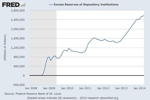 Depository institutions are required to keep a certain percentage of their deposits in storage with the Federal Reserve (Fed). After the financial crisis, the amount kept on deposit with the Fed understandably increased. Banks also kept an “excess” amount with the Fed, over and above their legal requirements. These are called excess reserves. You might ask why a bank would want to keep excess reserves with the Fed when they could simply create new loans with those funds.