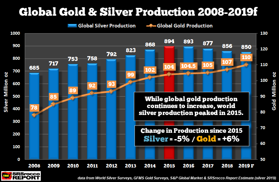 Furthermore, Polymetal International, Russia’s largest silver producer, which accounted for 58% of the country’s total mine supply last year, is down 14% in the first half of 2019. Russia is the fourth largest silver producer in the world, followed by Chile. So, four of the top five silver producers in the world are showing considerable declines in mine supply.