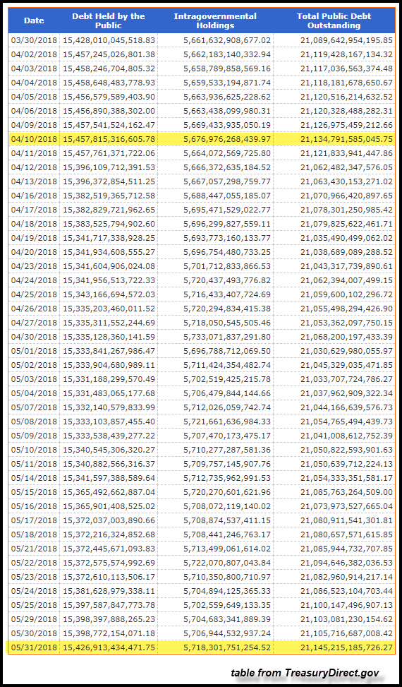 And remember, this is just the ADDITIONAL interest expense paid from Oct-April to service the massive U.S. public debt. If interest rates continue to stay the same or rise for the remainder of the fiscal year, the U.S. government will likely pay between $45-50 billion more in 2018 to service its debt.