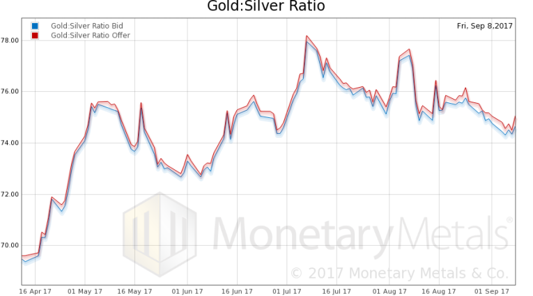 Next, this is a graph of the gold price measured in silver, otherwise known as the gold to silver ratio. The ratio was all but unchanged.