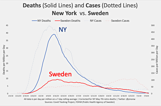 Have you seen this comparison between New York and no-lockdown Sweden (courtesy of Lew Rockwell and David Stockman)? The markets see through that, and keep their focus on the countermeasures instead. Money printing is in our future, and won't really end until inflation rears its ugly head.
