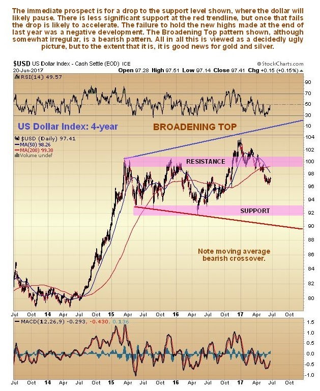 The following text written with respect to the 4-year dollar chart is taken from the report "The Sun Rises on the Precious Metals Sector" as it is unchanged. . .
