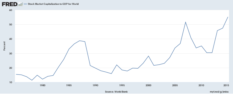 This tells us that the peak in 2000 on this global capital market to GDP chart resulted in a moderately isolated capital market peak that was uniquely available within the US and major economies – not globally. The 2008 peak represented a more globally equal capital market peak. This means the majority of the global capital market experienced capital appreciation. The same thing is happening right now – the global markets are experiencing an overall capital market appreciation that is a result of the past 20+ years of central bank policies and economic recovery efforts.