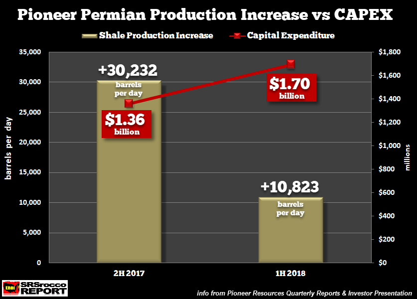 Well, I hope this is true because Pioneer’s first half 2018 production results in the Permian were quite disappointing compared to the previous period. If we compare the increase of Pioneer’s shale oil production in the Permian versus its capital expenditures, something must be seriously wrong.
